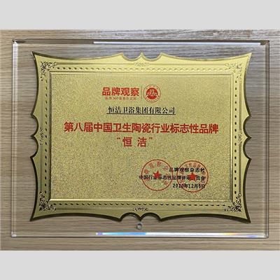獎 項:第八屆中國衛(wèi)生陶瓷行業(yè)標志性品牌—恒潔