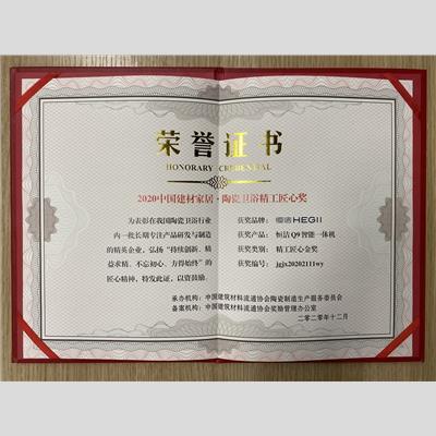 獎 項:2020中國建材家居·陶瓷衛(wèi)浴 精工匠心金獎——恒潔Q9