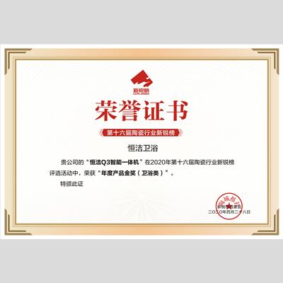 獎 項:年度產品金獎——恒潔Q3智能一體機