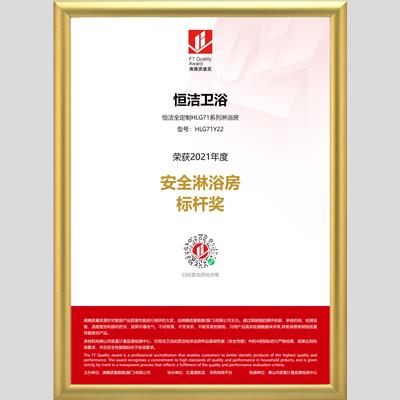 獎 項:安全淋浴房標桿獎-恒潔全定制HLG71系列淋浴房HLG71Y22