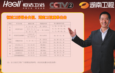 恒潔衛浴正式登陸中央電視臺和湖南衛視權威媒體,拉開了全方位立體傳播的大幕。