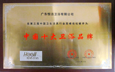 恒潔衛浴榮獲由中國建筑裝飾協會廚衛工程委員會頒發的“2009年度中國廚衛百強衛浴領軍企業10強“稱號。