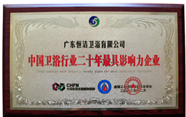 恒潔衛浴連續四年獲得由中國建筑裝飾協會廚衛工程委員會評選的“中國廚衛百強衛浴領軍企業10強”稱號。