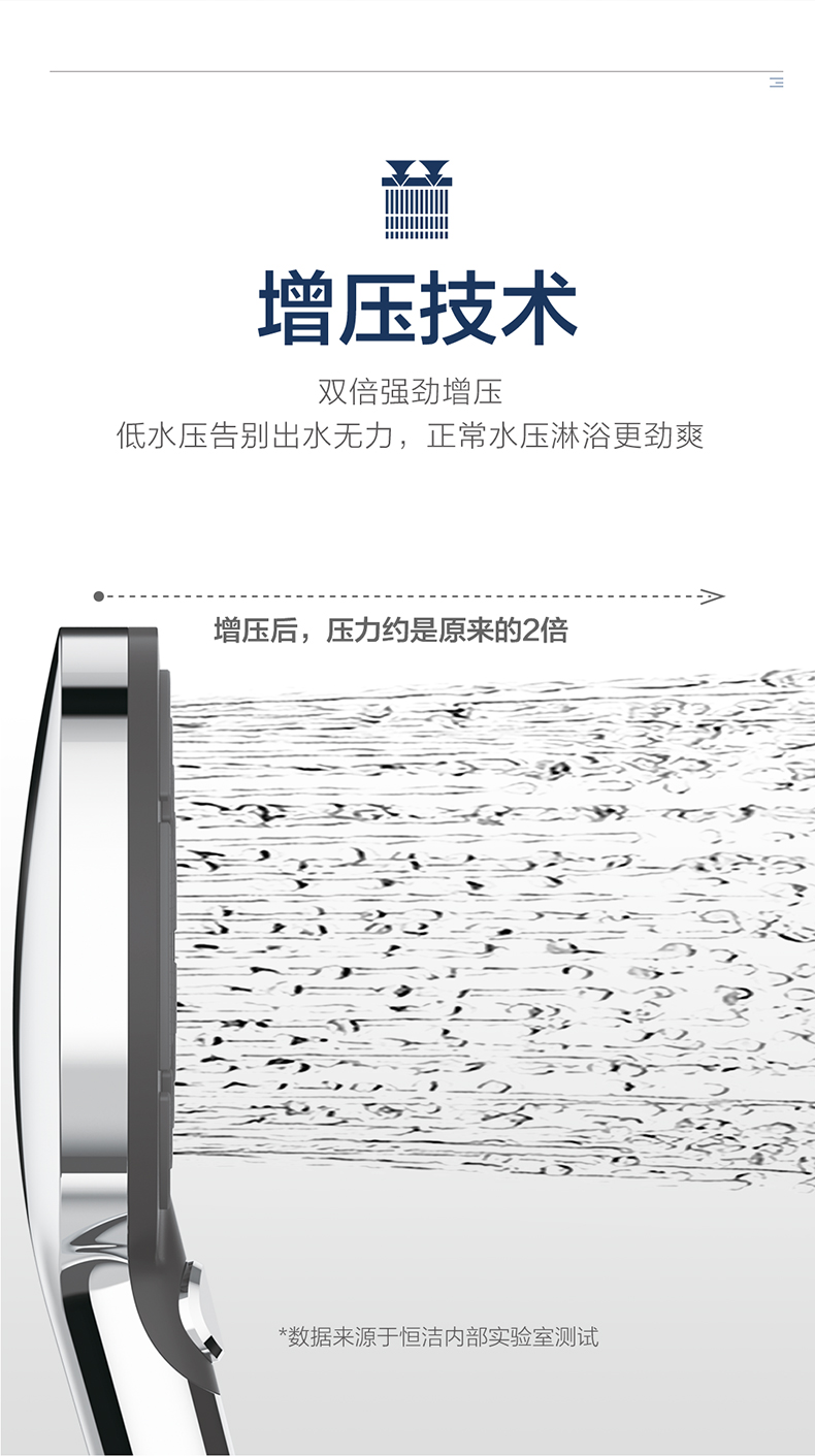 - 恒潔增壓技術(shù),0.45mm極致細(xì)孔設(shè)計,出水密集柔和