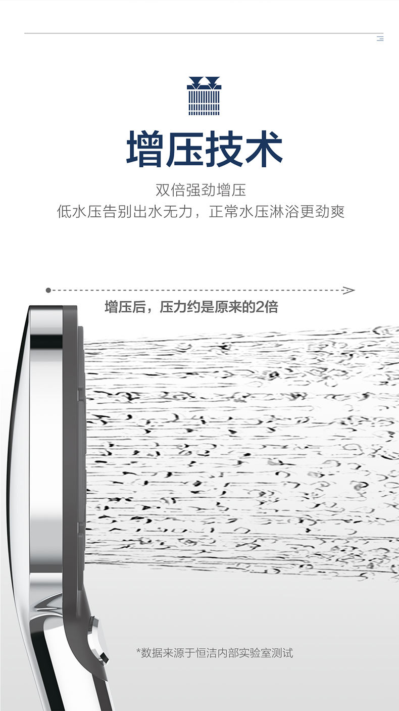 恒潔增壓技術,0.45mm極致細孔設計,出水密集柔和