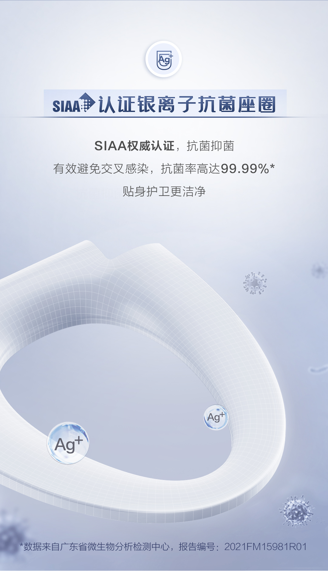 - SIAA認證銀離子抗菌座圈:SIAA權威認證,抗菌率高達99.99%