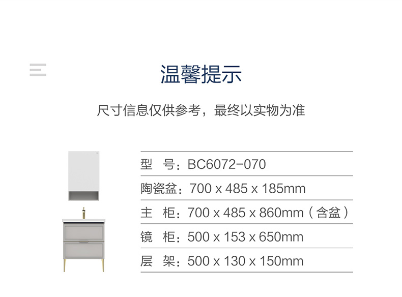 主柜尺寸:700x485x860mm(含盆)