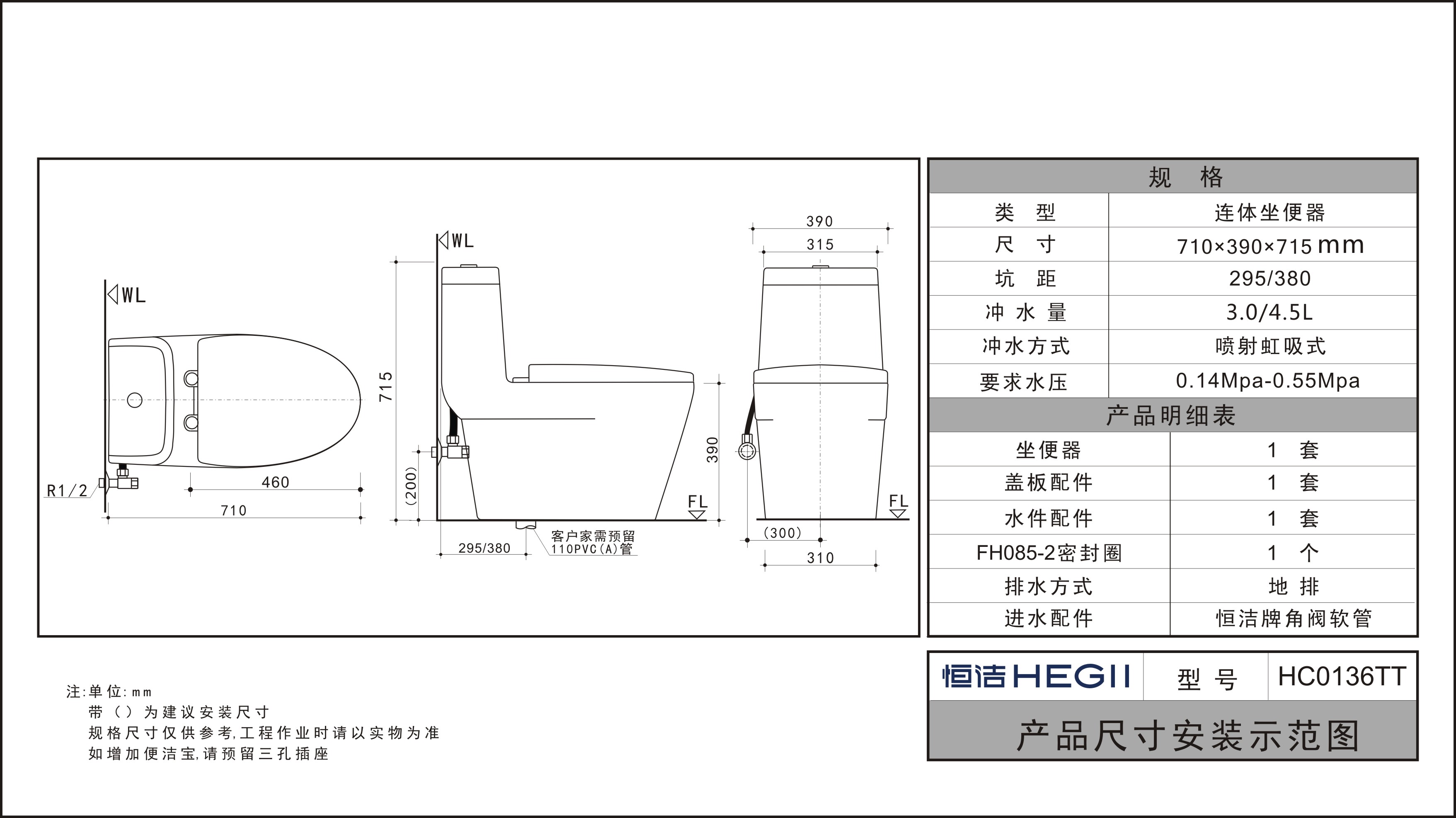 坑距:295/380mm