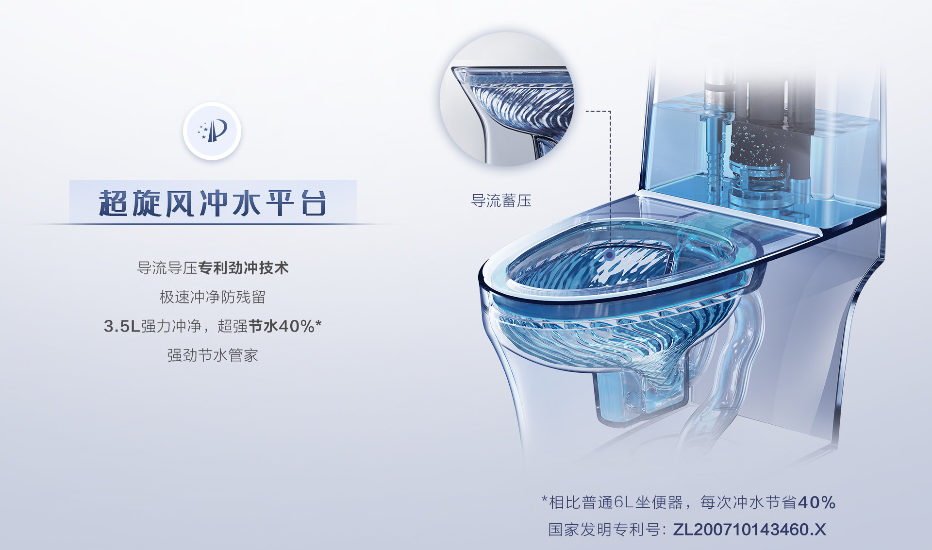 超旋風沖水平臺:3.5L強力沖凈,超強節水40%