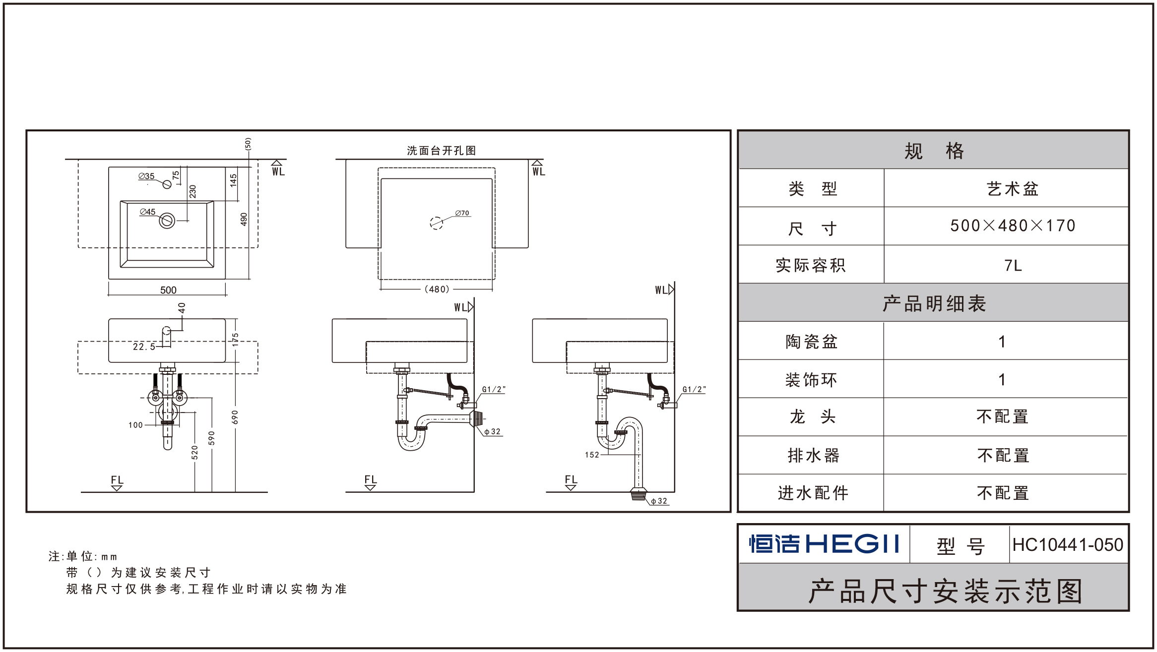 HC10441-050方形半嵌入式藝術盆